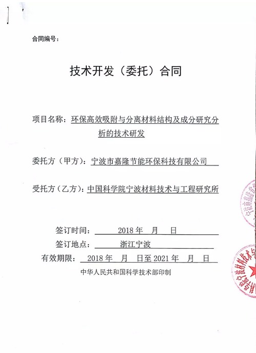 寧波市嘉隆節(jié)能環(huán)??萍加邢薰?以下簡(jiǎn)稱“公司”)于近日與中國(guó)科學(xué)院寧波材料技術(shù)與工程研究所簽署了《環(huán)保高效吸附與分離材料結(jié)構(gòu)及成分研究分析的技術(shù)研發(fā)》。合同簽署后公司與中科院進(jìn)行了深入的溝通,啟動(dòng)了相關(guān)項(xiàng)目的科研工作,現(xiàn)將合作環(huán)保高效吸附與分離材料結(jié)構(gòu)及成分研究分析的技術(shù)研發(fā)項(xiàng)目的相關(guān)事宜公告如下: